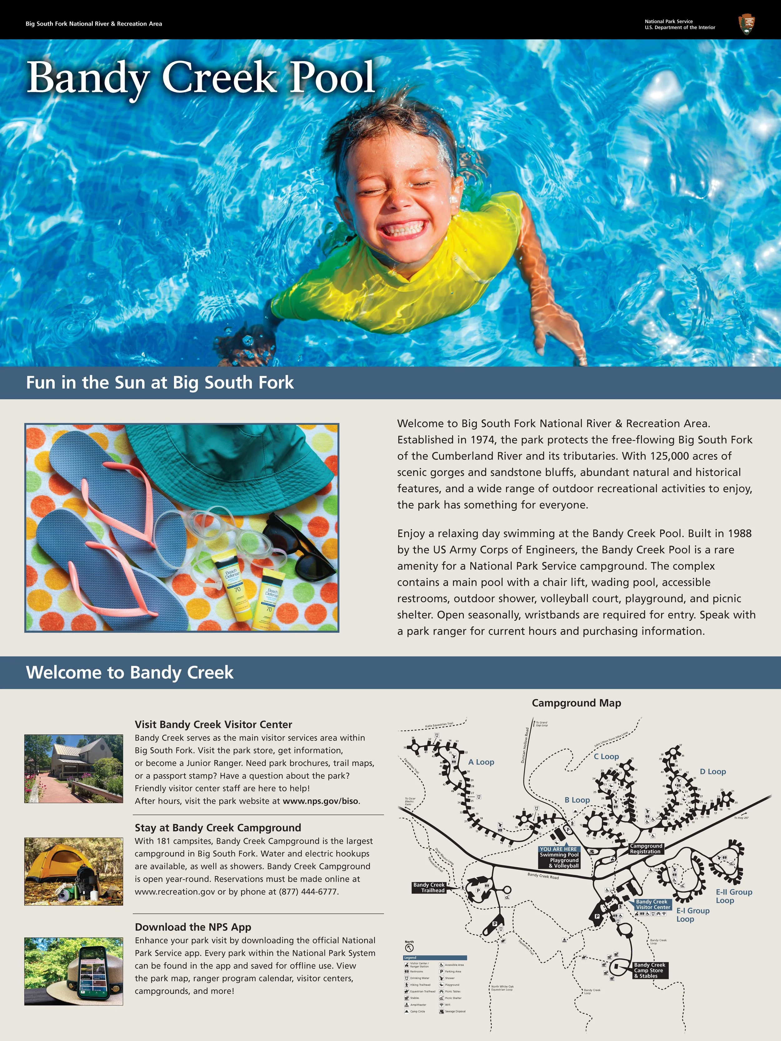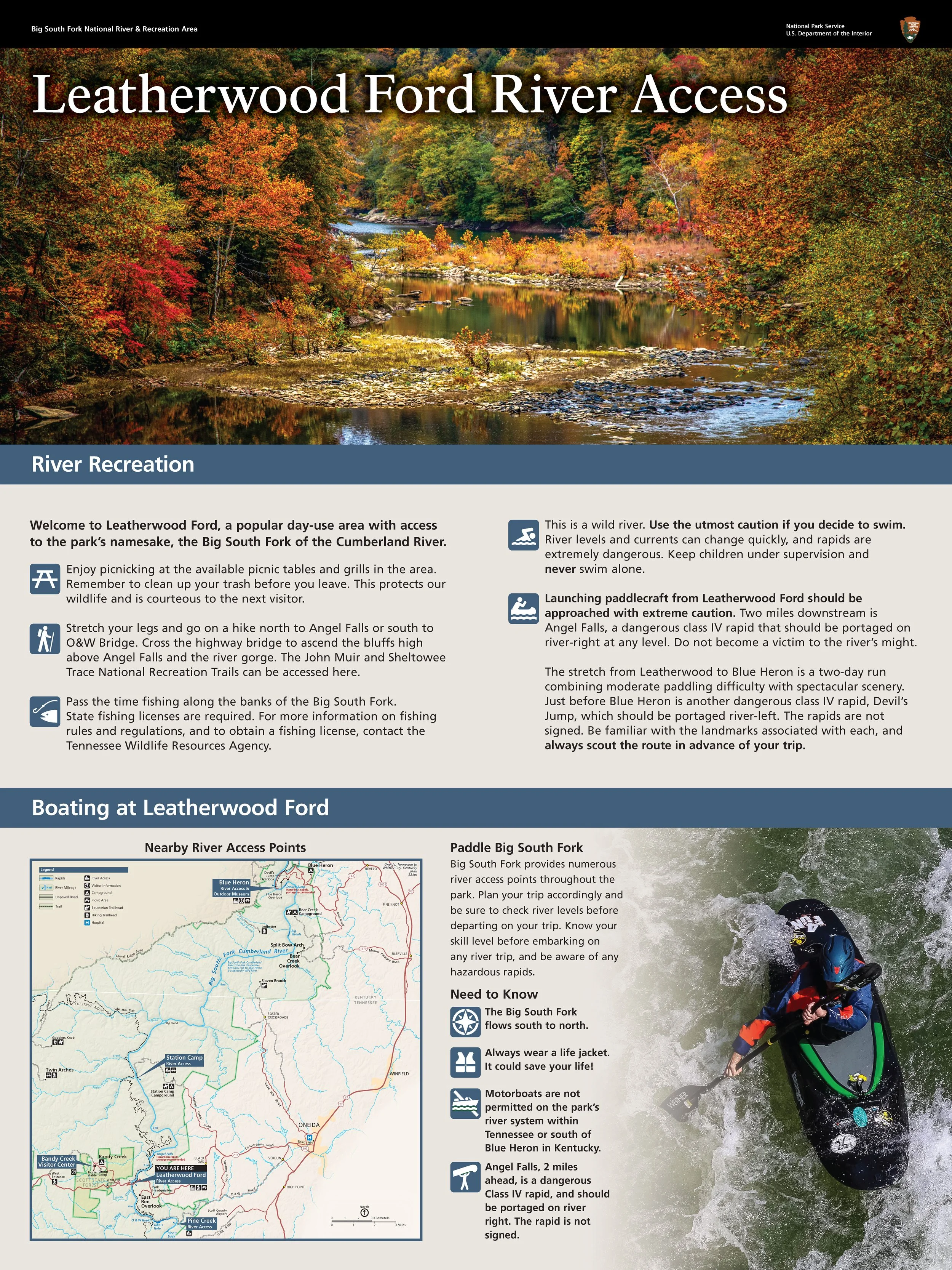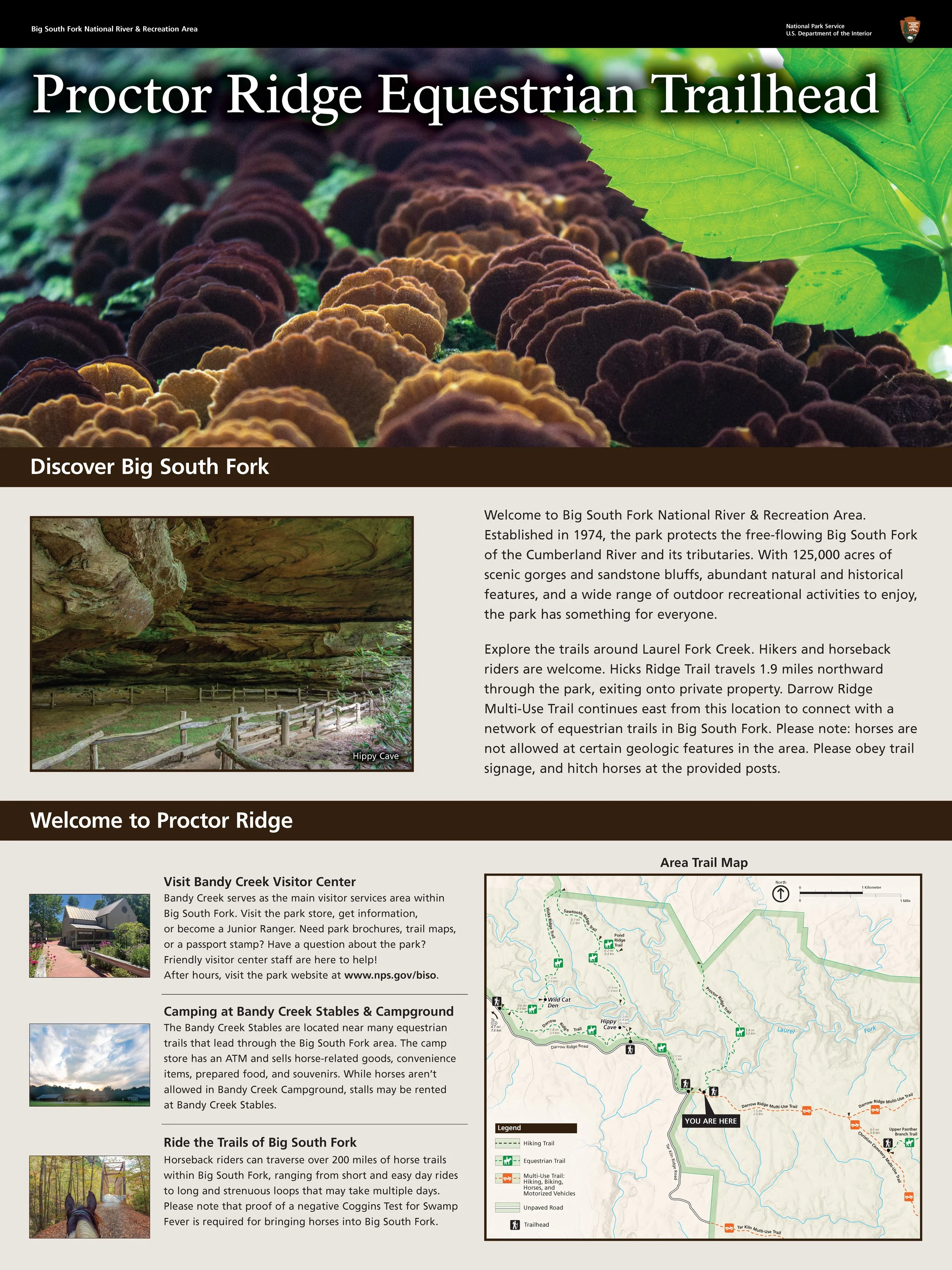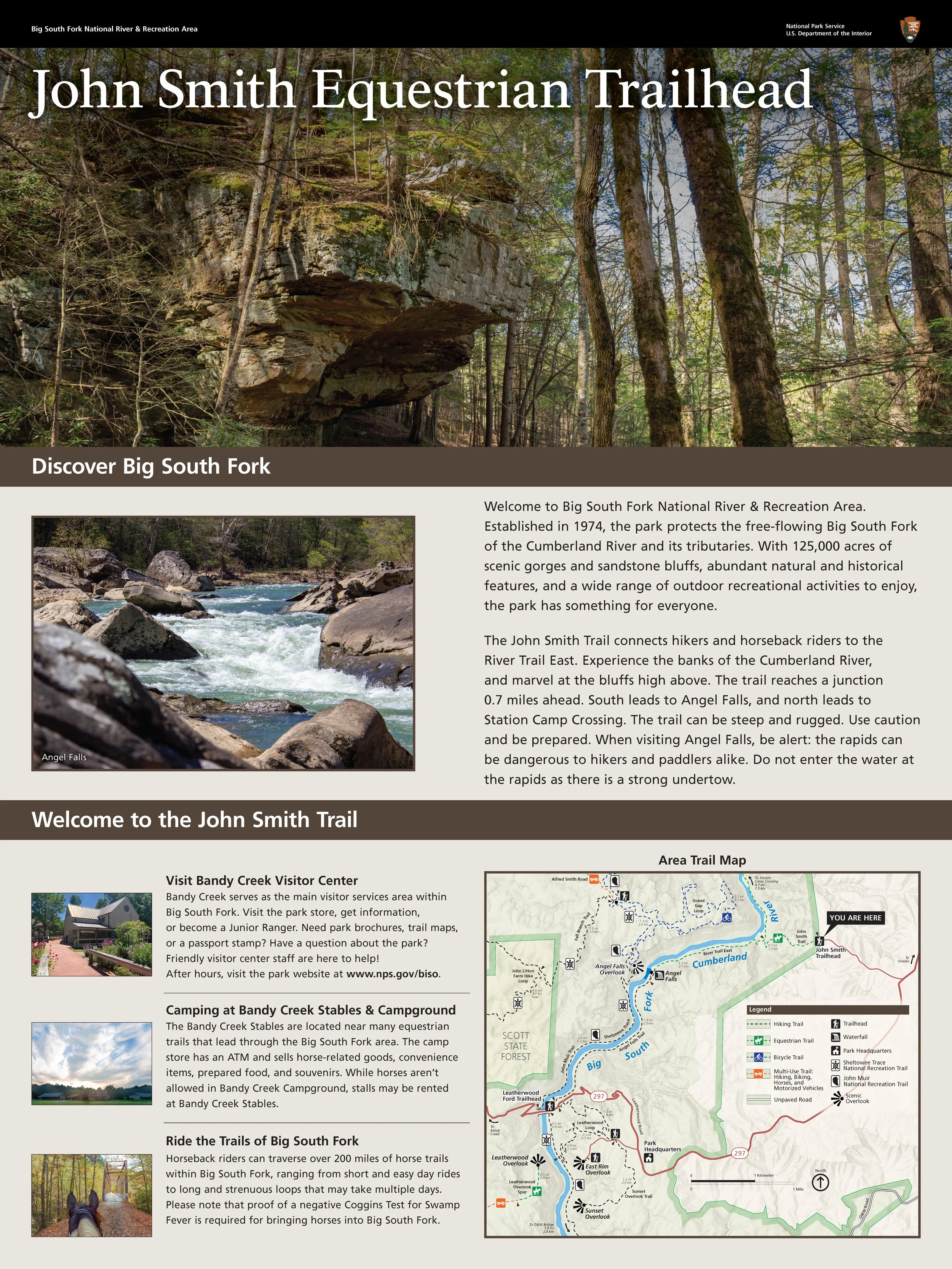 Designed ~50 new large format information boards to install around Big South Fork at trailheads, campgrounds, visitor centers, and river access points. Coordinated with project management, legal compliance, and external vendor to keep project moving forward. Designed new trail maps in accordance with the NPS Unigrid Style. Performed research and site visits to provide accurate and up-to-date information to visitors.
