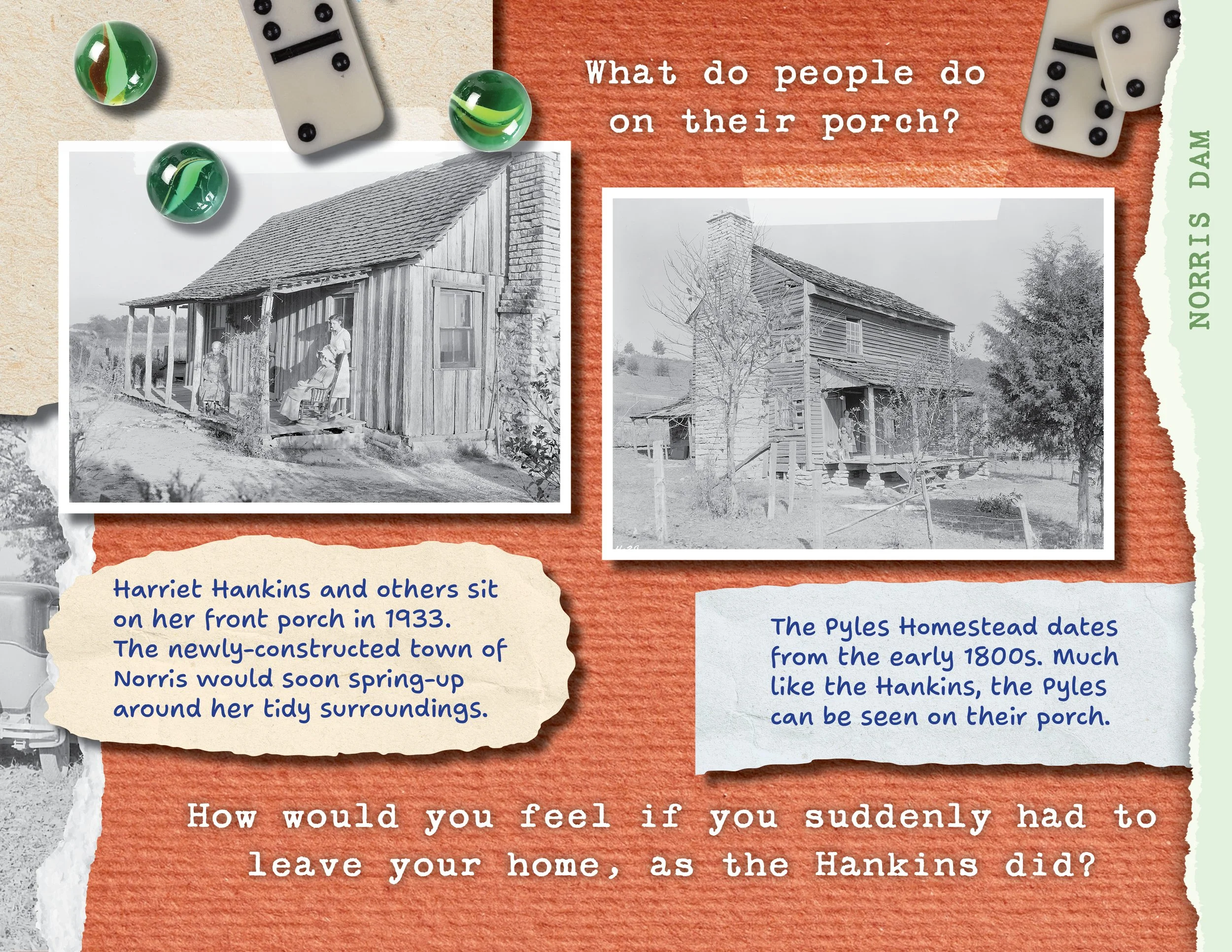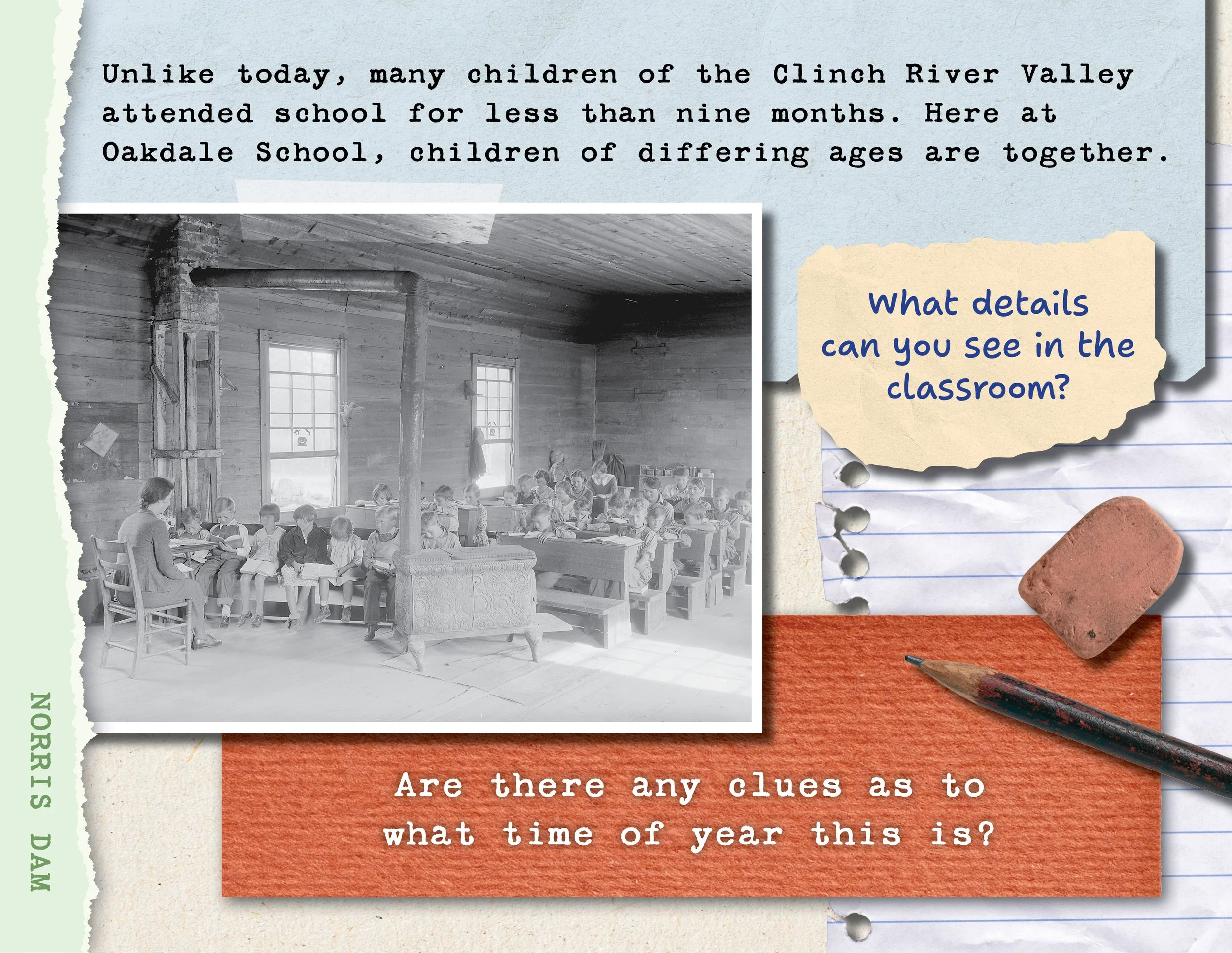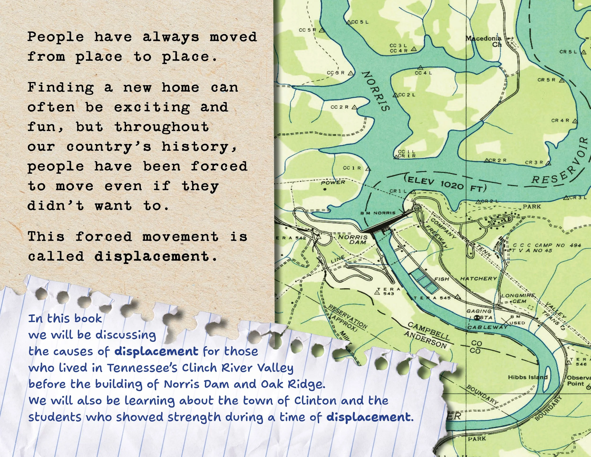 Designed a series of three children’s books to be used in classrooms. The books tell the history of three places along Tennessee’s Clinch River Valley: Norris Dam, the Manhattan Project, and the Clinton 12. The books use a scrapbook style with photorealistic textures to create an engaging experience for young readers.