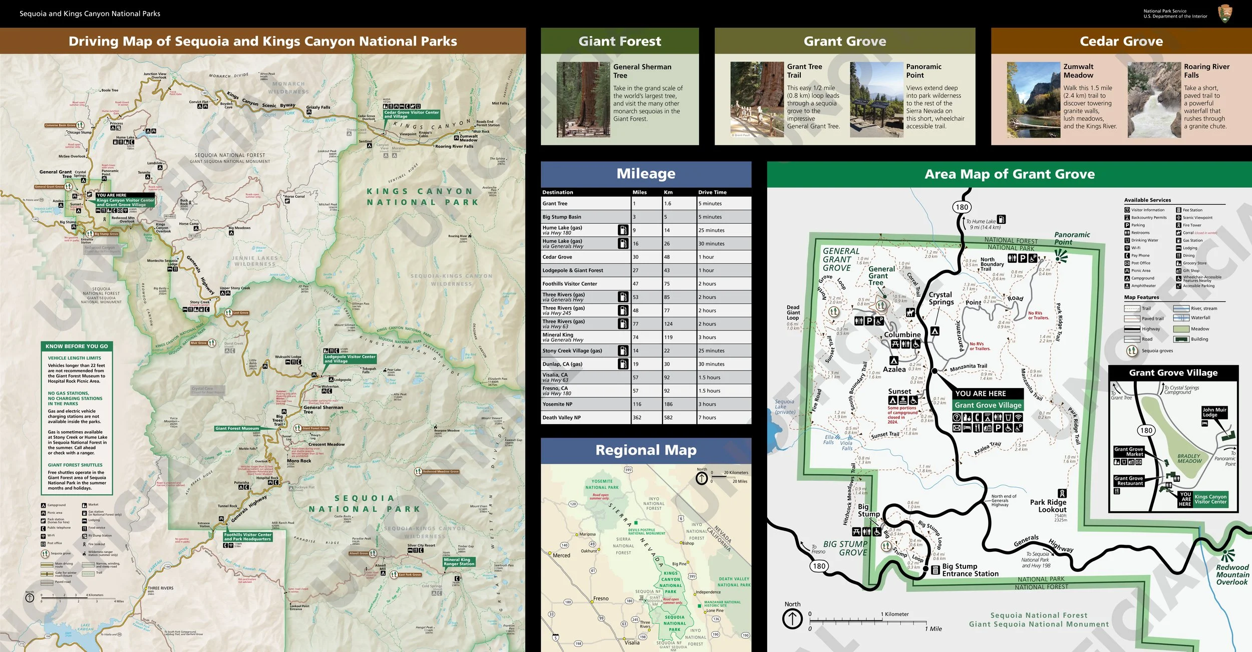 Created new layout for under-glass desk maps. Redesigned Grant Grove area map and created new Grant Grove Village inset map.